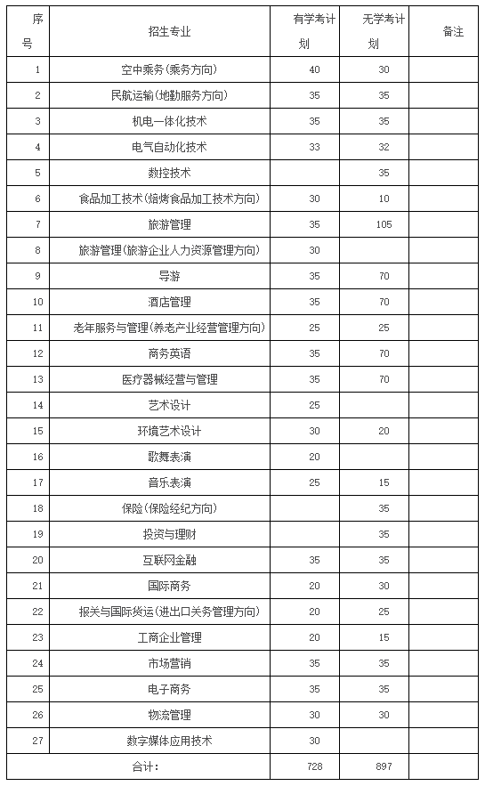 2020年高职单招专业与计划按有学考成绩考生和无学考成绩考生分别编制、分别录取,以最终公布的招生计划为准。
