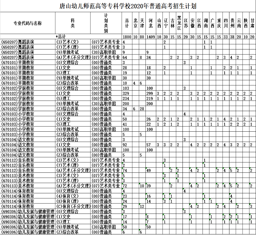 唐山幼儿师范高等专科学校2022年高招计划