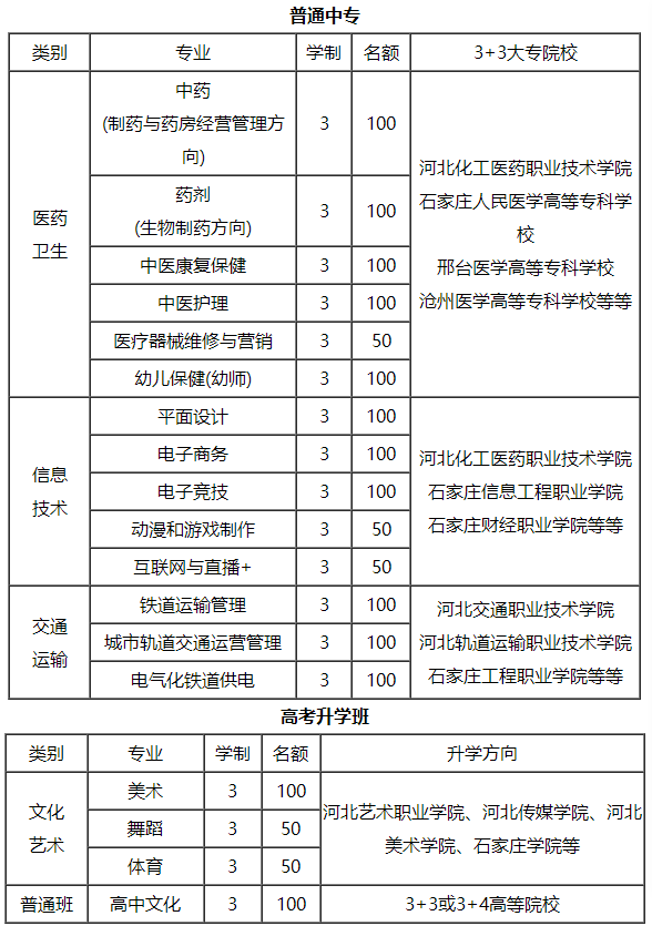 石家庄新希望职业中专学校专业